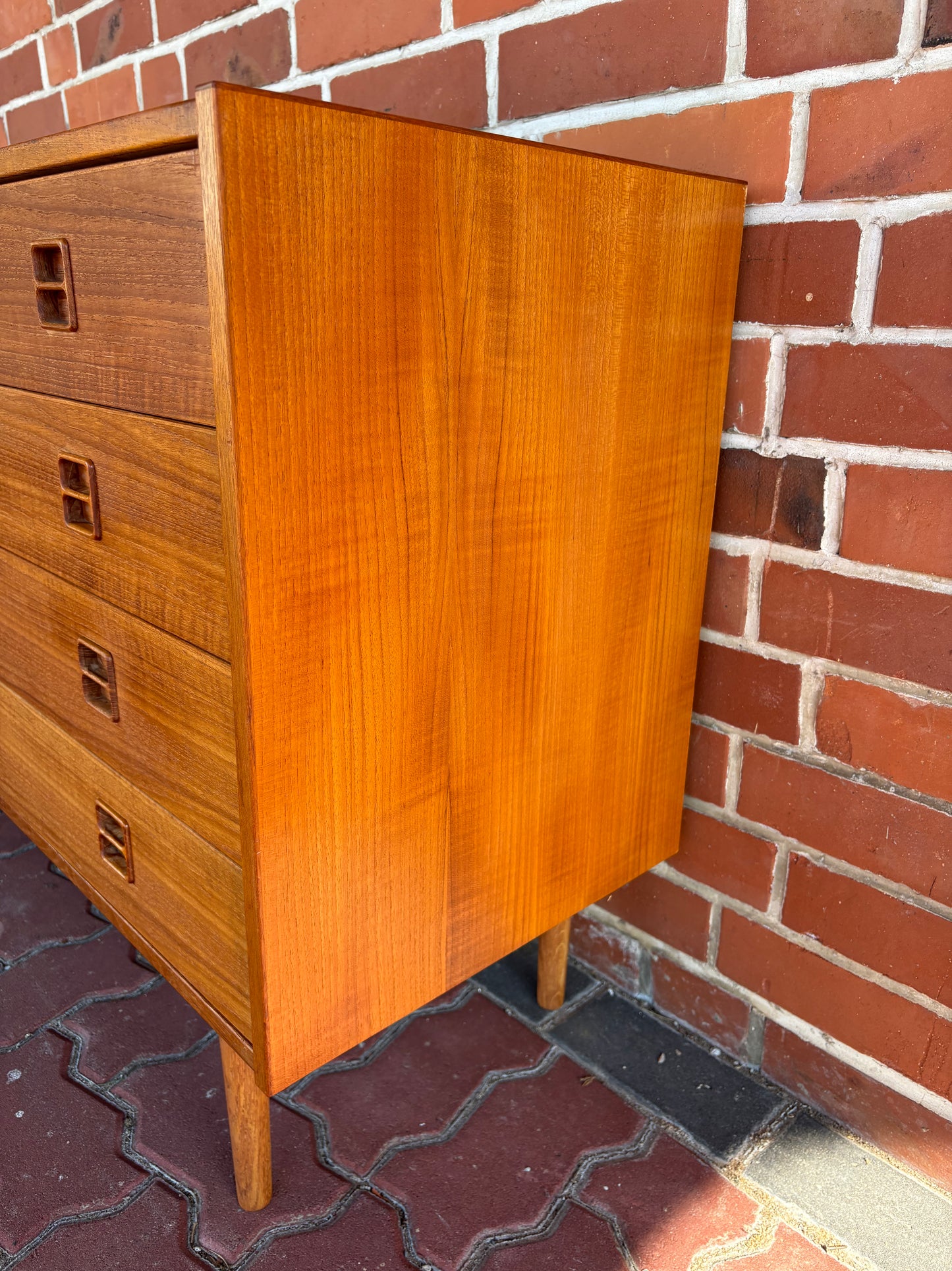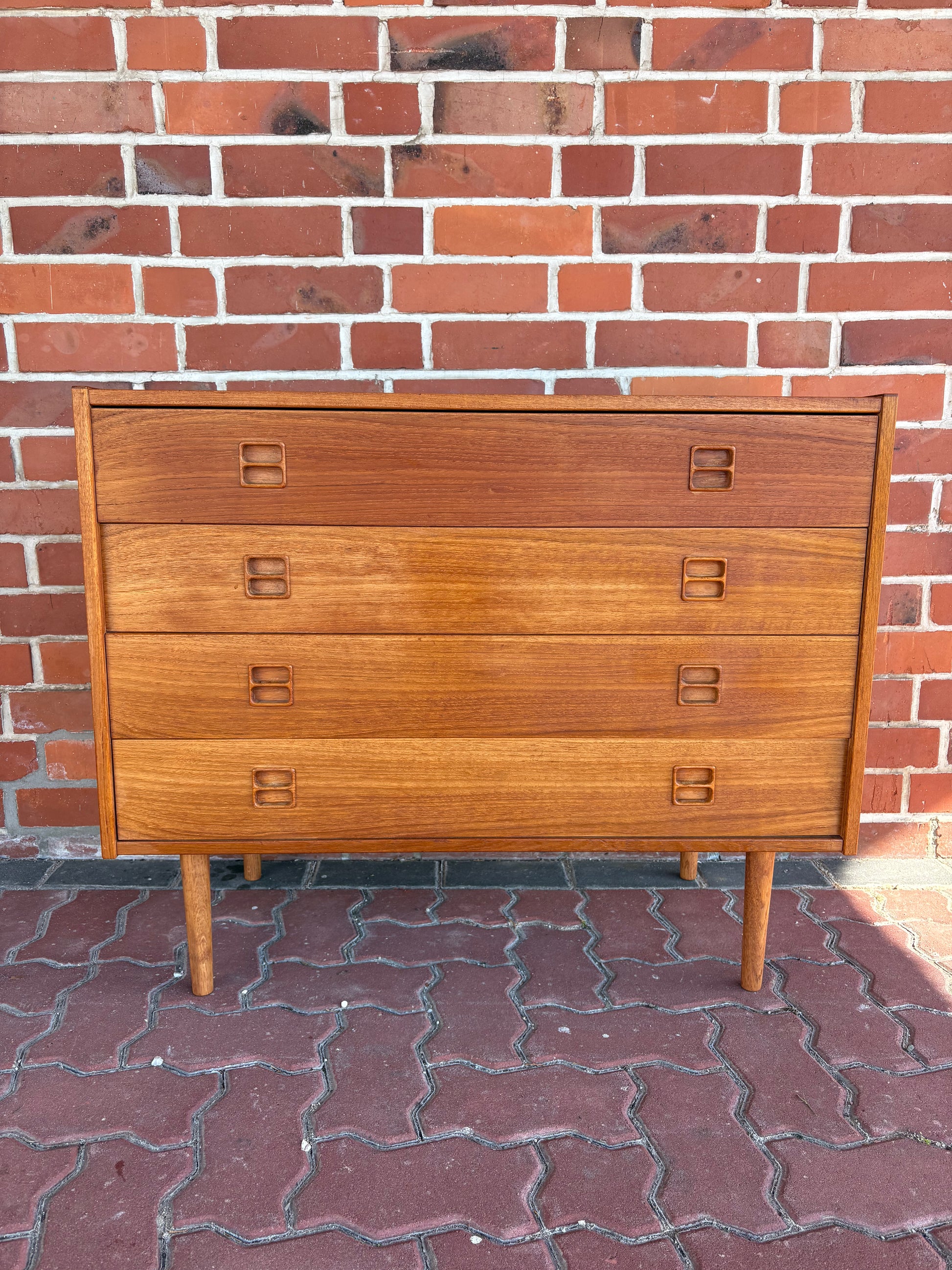 Zum Verkauf steht eine Teakholz Kommode aus Dänemark. Sie stammt ca. aus den 70er Jahren. Die 4 Schübe öffnen und schließen sehr gut.